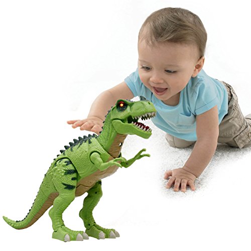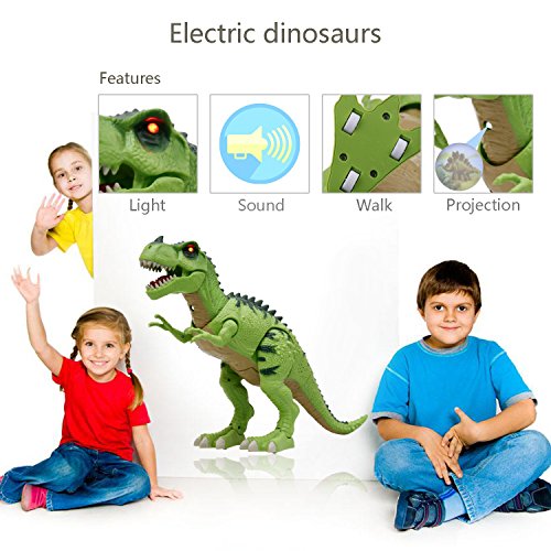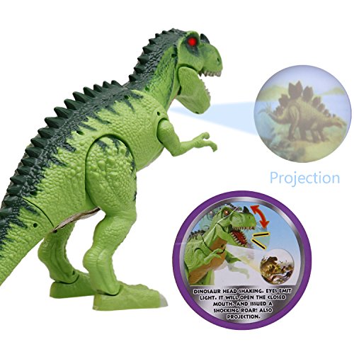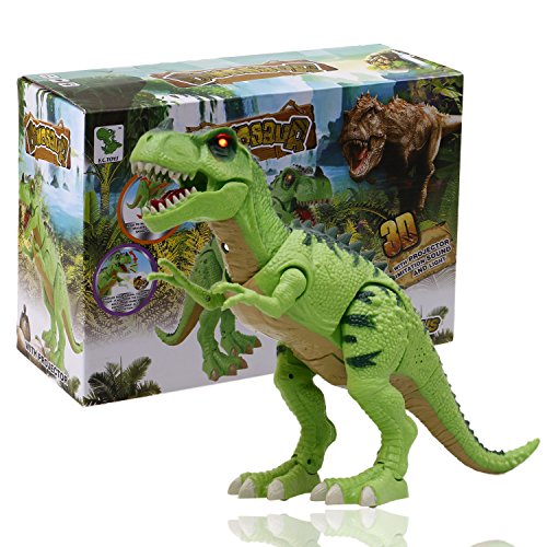 Walking tyrannosaurus toy: toysery walking t-rex dinosaur toy that walks while he roars and shakes his head, light up eye and flash as he moves around. Educational, help your kid's develop brain.