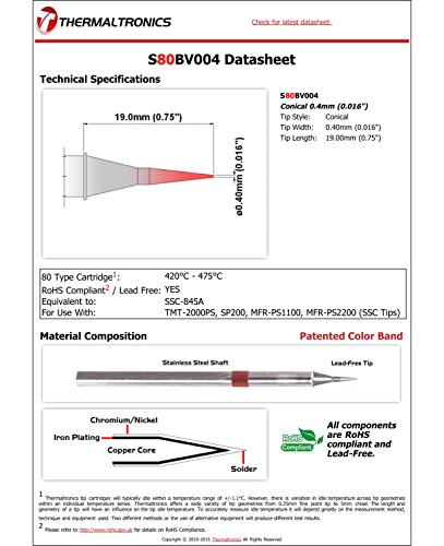 Thermaltronics S80BV004 Conical 0.4mm (0.016") interchangeable for Metcal SSC-845A