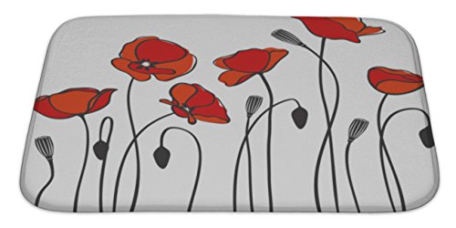 Gear New Red Poppies Bath Rug Mat No Slip Microfiber Memory Foam