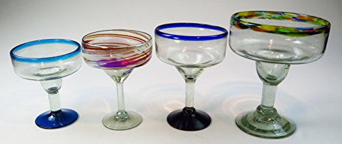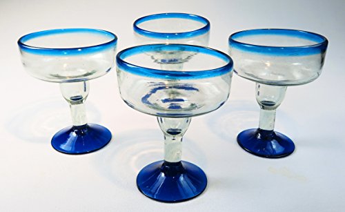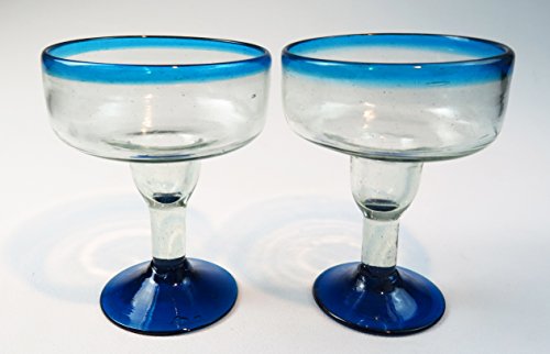 Studio : Eye4Art Publisher : Eye4Art Product Description Every day is a fiesta whether serving margaritas or ice cream (makes a great desert dish). These glasses are crafted in Mexico from lead free recycled glass. Decorated with a colorful turquoise band of color around the rim and base. These hand blown margarita glasses coordinate beautifully with the other turquoise rim and swirl glasses and Pitchers. Because they are handmade dimensions and colors may vary slightly. Sturdy enough for everyday use. Mouth-blown lead-free glass. Dishwasher Safe Size: approximately 6 inches High 5 inches Wide; and holds around 10 oz. Care instructions: Our Mexican Glassware is individually mouth blown, hand formed and made from recycled glass. Trapped bubbles and slight variations in form, capacity and color are natural and charming features of the glassware. Although it is quite durable, this glass is not tempered so some extra care is necessary. A cooling-off period is essential after the glassware is removed from the dishwasher. Extreme temperature changes may cause thermal shock and cracking. This glassware is not suitable for serving hot beverages. 0