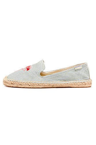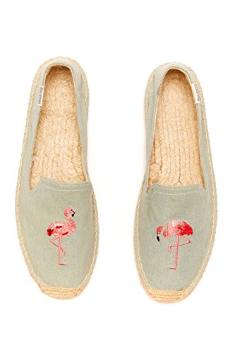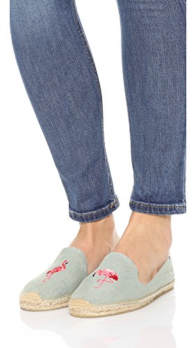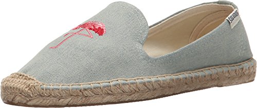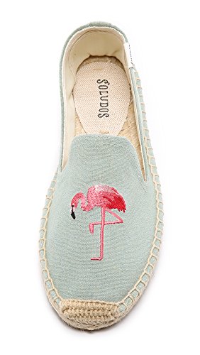 Soludos Women's Smoking Slipper Embroidery Flat, Flamingo Chambray, 6 M US
