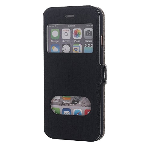 iPhone 6S Case, Pandawell™ [Big Window] PU Leather Magnetic Closure Flip View Case Folio Stand Cover for Apple iPhone 6S / iPhone 6 4.7 inch (Black)