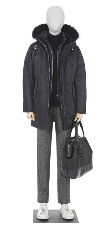 製品素材 ポリエステル100%、ポリエステル100%、ポリエステル20%、ポリウレタン5%、ハットファーラクーンファー100%、インナーポリエステル100%、充填1ダックダウン80%、ダックフェザー20%、充填2ポリエステル100%