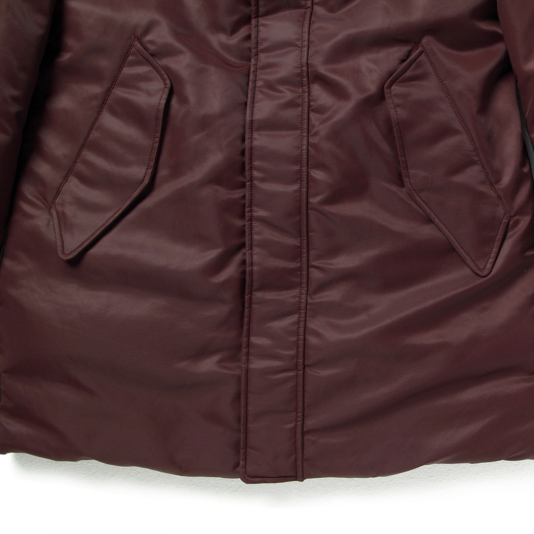 サイズ ポリエステル100%、ポリエステル100%、ポリエステル20%、ポリウレタン5%、ハットファーラクーンファー100%、インナーポリエステル100%、充填1ダックダウン80%、ダックフェザー20%、充填2ポリエステル101%