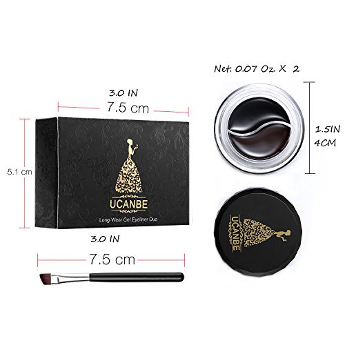 Ucanbe Long-wear Gel Eyeliner Duo Waterproof Cream Eye Liner Kit, 0.14 Oz. (Red-brown Shimmer & Deep Brown Shimmer)