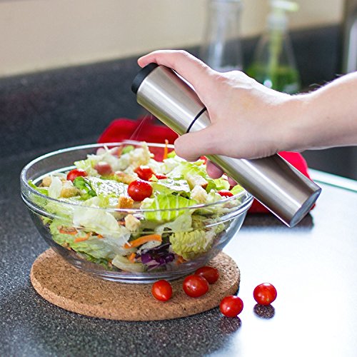 Product Description How to use: 1. Fill bottle about halfway with oil. The remaining space is needed for air pressure that builds when the cap is pumped. 2. Tighten screw collar. 3. Pump the cap 10 to 15 times, or until resistance is felt. This indicates sufficient air pressure exists to deliver a perfect spray. The less oil there is in the container, the more pumps will be needed to achieve resistance. (To deliver the most effective oil mist, hold the bottle vertically while spraying.)