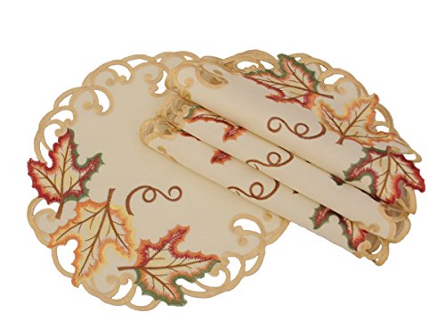 XIA HOME FASHIONS XD160912 MOISSON LEAF EMBROIDERED CUTWORK FALL DOILIES, 12" ROUND SET OF 4