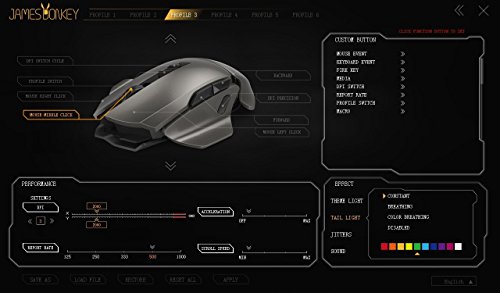 6 different user-defined configuration stored settings can switch freely. 8 programmable buttons for MMO/Multimedia