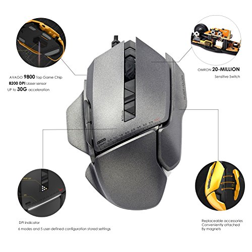 Highest quality professional hardware, AVAGO 9800 laser sensor, 8200 DPI, up to 30G acceleration, highly durable OMRON switches, 20 million times service life