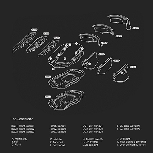 GranVela 007 8200 DPI DIY Ergonomic Laser Gaming Mouse Detachable Parts 54 Unique Configurations for PC Gamer (Gray)