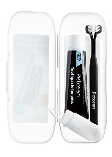 The importance of daily toothbrushing. Veterinary dental associations recommend that pet owners follow this plan in order to enhance the pet’s oral health. Take your pet to the veterinarian for a dental exam. Don’t wait for his annual check-up if you suspect a problem. Your veterinarian may recommend dental care at the hospital including removal of plaque and tartar, and may suggest a dental care program at home. Begin a dental care program at home. Plaque formation starts within 12 hrs of a thorough dental cleaning, which is why dental cleaning at home is necessary. This is where the Petosan brush plays a major role. Petosan has been developed by a team of Scandinavian dentists, veterinarians and leading edge toothbrush manufacturer. Its innovative design has proved to be particularly user-friendly and effective, and due to its two brush segments in angular relationship, the Petosan toothbrush simplifies brushing and enables more pet owners to clean their pet?s teeth and thereby improving their oral hygiene. The Petosan Pet Toothpaste is designed for those of us who brush every day. It is formulated to be very tasty, helping to make the brushing a positive experience for your dog. The paste contains Pyrophosphates that help control tartar by inhibiting the formation of dental calculus (tartar). Petosan use Hydrated silica, a mild abrasive used for grinding and polishing. It is found as crystals, small and smooth particles which are preferred to avoid tooth wear. Instructions Included In the package.Feature