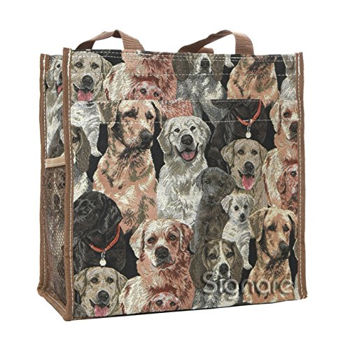 -. Binding : Apparel -. Brand : Signare -. Color : Beige -. Department : womens -. EAN : 5060376422948 -. Feature : Pair of full width pockets located on both sides of the shopper; one is fastened with a zip and the other with velcro for a stylish variation and easy access. / Lined with a synthetic material on the inside and a zip pocket for belongings. / Top of the bag is gusseted with the tapestry material and has zip fastening across the full width, with velcro fasteners for extra security. / Mesh pocket at one end of the bag; ideal storage for a water bottle or umbrella. / Size: W 31cm x H 30cm x D 13.5cm Weight: 0.45kg -. PackageQuantity : 1 -. ProductGroup : Shoes -. ProductTypeName : SHOES -. Title : Signare Womens Fashion Tapestry Shopper Bag Shoulder Bag in Labrador Design