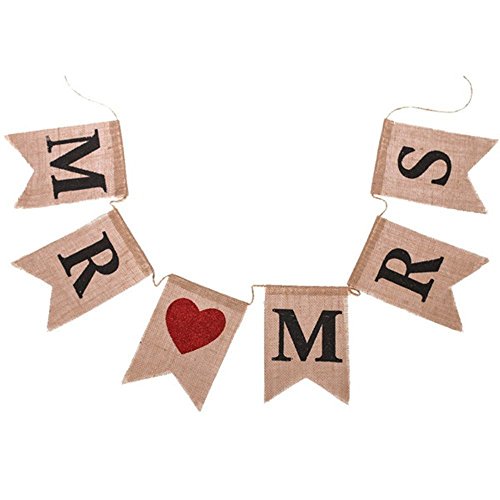 OZXCHIXU(TM) Mr Mrs Burlap Bunting Banner for Wedding Decoration, 6pcs Flags