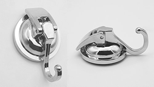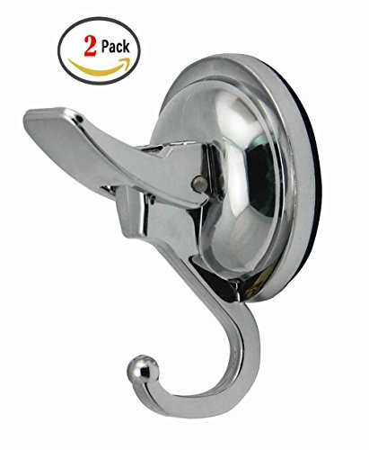 NewCYA Pack of 2 Suction Cup Hook Holder-Robe Towel Hook Wall Mounted Heavy Duty with Self-Adhesive, Chrome Finished for Bathroom & Kitchen