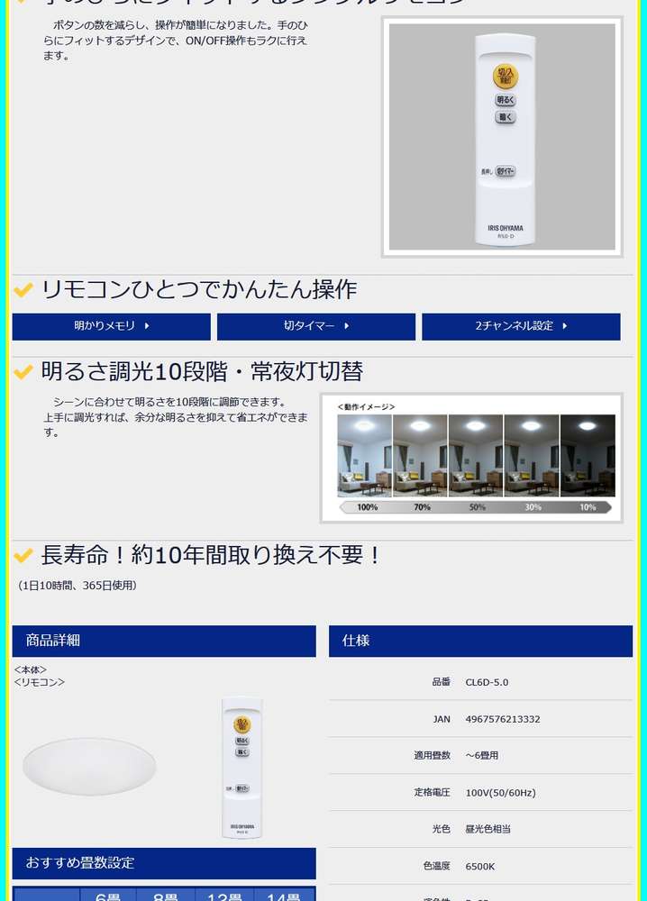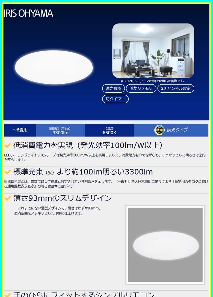 ●セット内容:LEDシーリングライト本体、取り付け用スペーサー(角・丸)、リモコン、リモコンホルダー、単4形乾電池2本、ネジ2本、取扱説明書