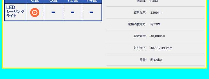 ●待機電力:0.5W 光色:昼光色相当 器具光束:3300lm