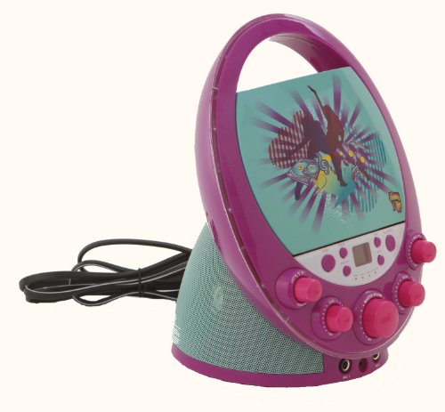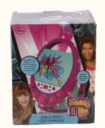 Get the crowd going with the Disney Shake It Up Disco Party CDG Karaoke Machine from Sakar. This super-cool set hooks up to your own television, displaying the lyrics on the screen. Flashing lights correspond with the sound of the music, and enhanced vocal effects, separate volume controls and dual microphone inputs promise loads of fun for the whole family.Feature