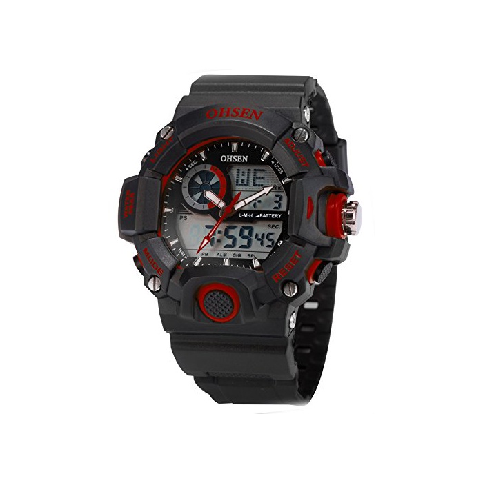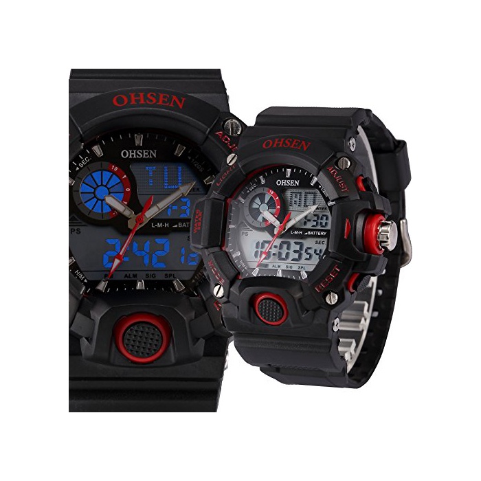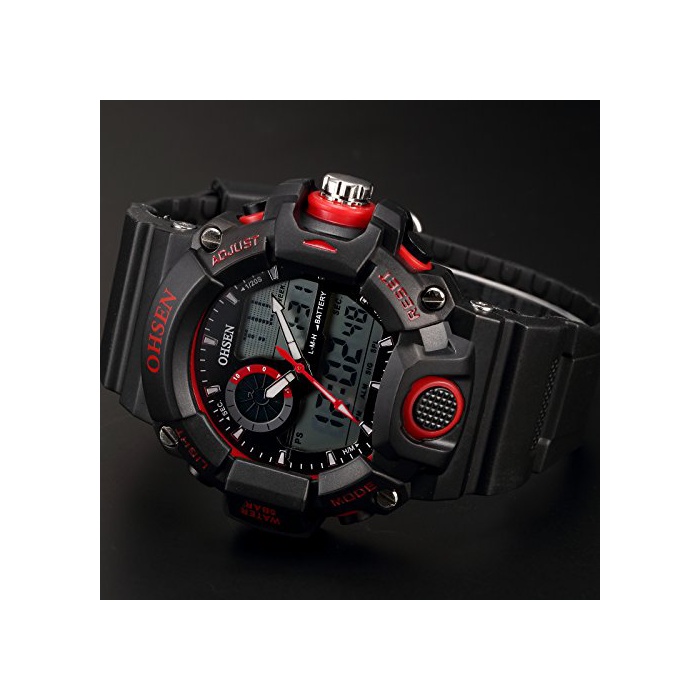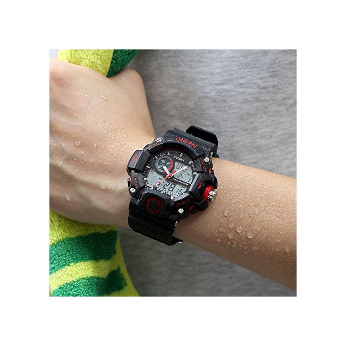 OHSEN LCD 맨즈 듀얼 코어 디지탈 백 라이트 날짜 아날로그 방수 스포츠 손목시계OHS219