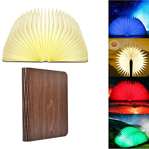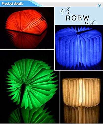 - 4 LIGHT COLORS: Red/Green/Blue/ Warm White light colors for option. Waterproof LED Folding Book Lamp, Art Light, Decorative Lights,Desk/Table/Wall Magnetic Lamp. It is made environmental-friendly wooden material.