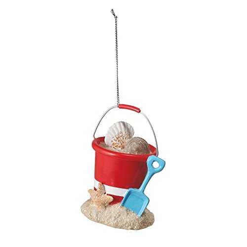 Christmas Decoration 3 Inch Beach Pail with Shells and Shovel Christmas Ornament