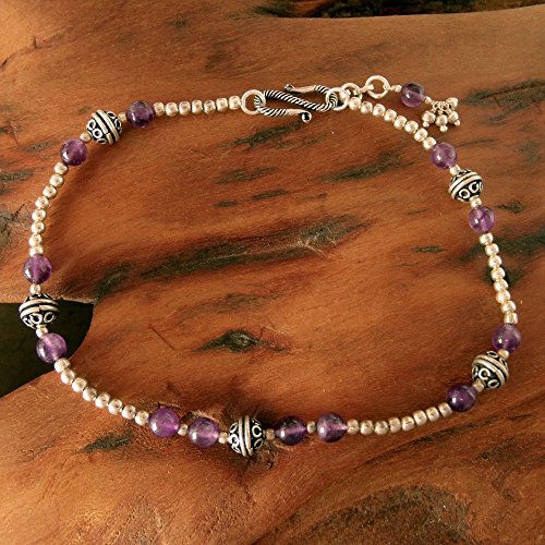 -. Binding : Jewelry -. Brand : NOVICA -. Department : womens -. Feature : An original NOVICA fair trade product in association with National Geographic. / Includes an official NOVICA Story Card certifying quality & authenticity. / NOVICA works with Ritu to craft this item. / Includes an original NOVICA jewelry pouch to keep for yourself or give as a gift. / A keepsake treasure designed to be loved for years to come. -. Label : NOVICA -. Manufacturer : NOVICA -. MPN : 174558 -. PackageQuantity : 1 -. PartNumber : 174558 -. ProductGroup : Jewelry -. ProductTypeName : FINENECKLACEBRACELETANKLET -. Publisher : NOVICA -. Studio : NOVICA -. Title : NOVICA Amethyst .925 Sterling Silver Beaded Anklet, 9.75", 'Mystical Muse'