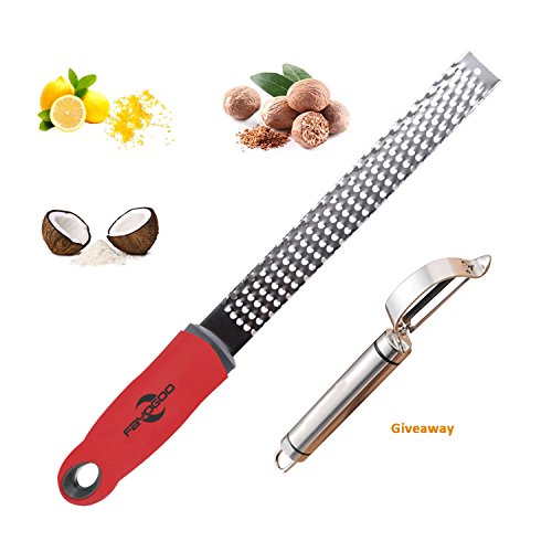 Fayogoo Multifunction Lemon Grater & Zester with Stainless Steel Blade Grips for Cheese, Chocolate, Lemon, Ginger & Potato,Kitchen Handheld Grating Tools & A Peeler,2 Pack