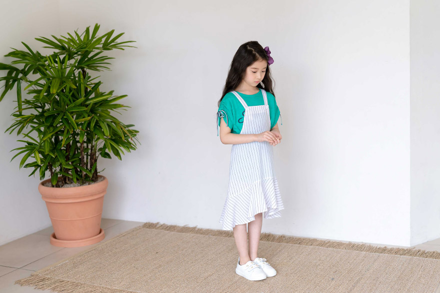 9, 11, 13, 15, 17호로 준비되어 있으며 하단에 측정된 사이즈 표를 참고해 주세요. 피팅한 여아 모델은 126cm에 22kg으로 다소 마른 체격이며, 넉넉하게 그린 9호를 착용하였습니다. 깔끔한 핏으로 잘 맞네요 :) 넉넉하게 블랙 13호를 차용하였습니다. 깔끔한 핏으로 잘 맞네요 ;) >