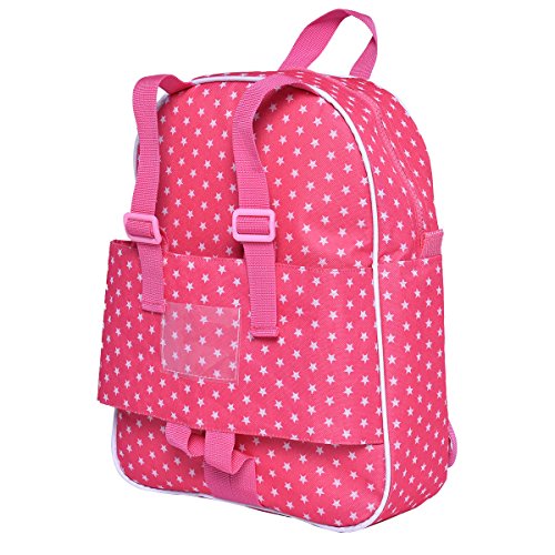 -. Binding : Toy -. Brand : Costzon -. EAN : 6940350842384 -. Feature : Lovely doll travel backpack with star pattern embellishment. / Wide shoulder strap reduces the pressure on the shoulder. / Enough room for additional clothing and accessories (not included) / Straps to fixed the doll, mesh pockets to pack the accessories / For all dolls up to 18". Please note: Dolls are not included. Material: 600D Oxford Cloth +190D Polyester +TC -. IsAdultProduct : 0 -. Label : Costzon -. Manufacturer : Costzon -. ProductGroup : Toy -. ProductTypeName : TOYS_AND_GAMES -. Publisher : Costzon -. Studio : Costzon -. Title : Costzon Doll Travel Backpack Carrier Case Kids School Bag for 18" Dolls