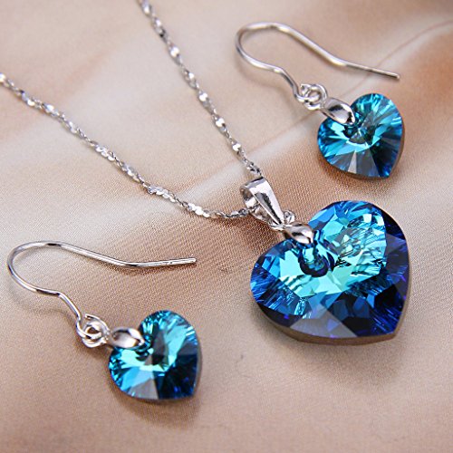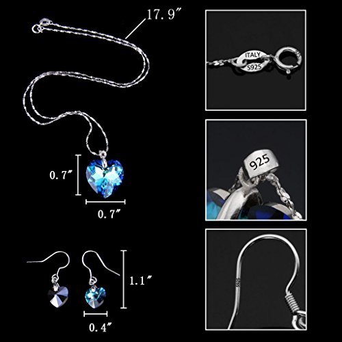 -. Title : EleQueen 925 Sterling Silver "Heart of Ocean" Bridal Necklace Earrings Set Bermuda Blue Adorned with Swarovski® Crystals
