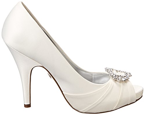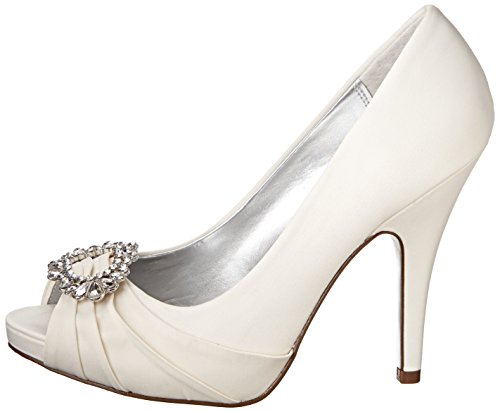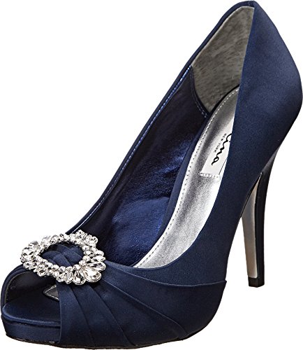 Enter the room with graceful elegance in the alluring Nina Elvira peep-toe pump. Featured in rich, lustrous satin, this women's evening shoe is accented with a crystal broach detail for glittering style. A lightly cushioned footbed pads every step, while the Nina Elvira dress shoe carries you atop a stable synthetic sole.Feature