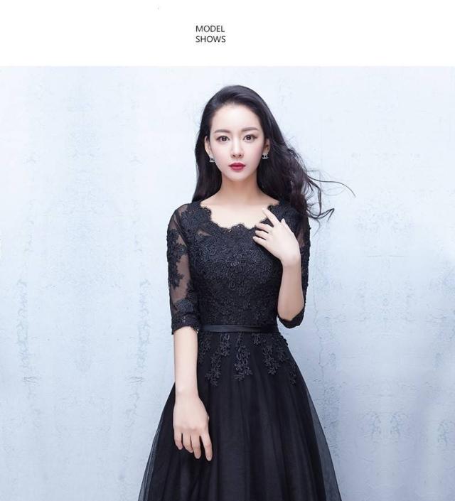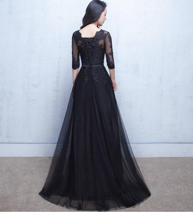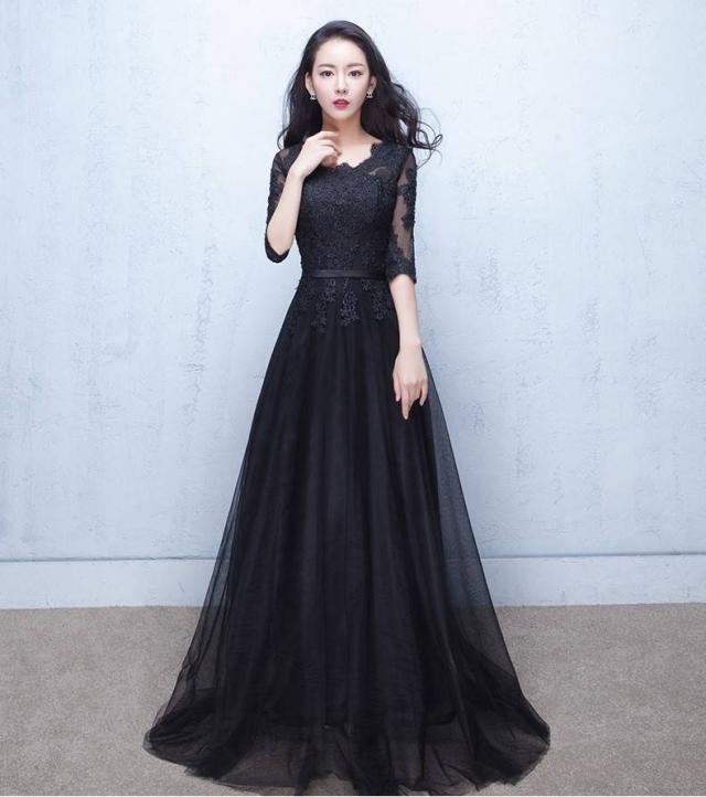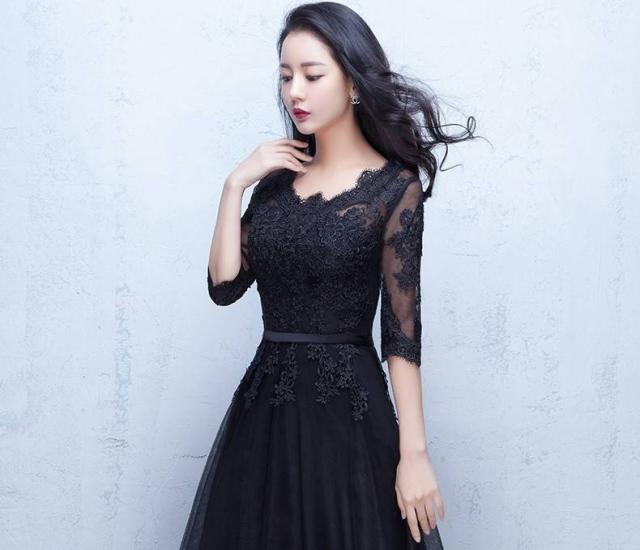 パーティードレス 結婚式 ブラック 五分袖 二次会 謝恩会 披露宴 卒業パーティー 成人式