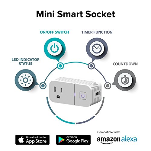Wireless Mini Smart Plug Outlet, WiFi Smart Socket Outlet Remote Control,Works with Alexa,No Hub Required,With USB Charging Port Rapid Charging(2.1A USB)2-Pack