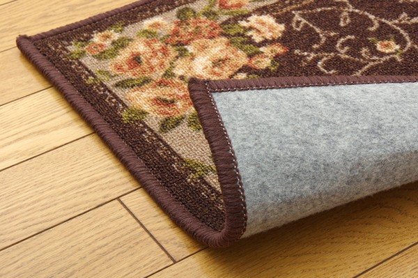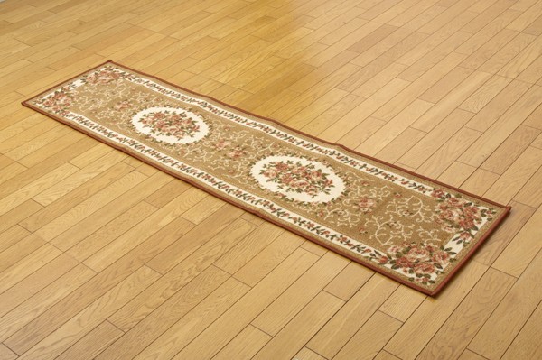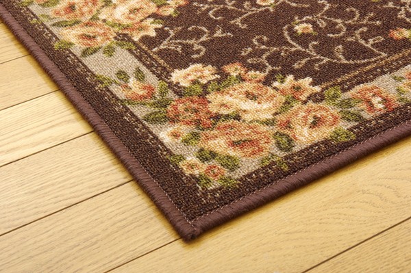 【商品名】ナイロン 花柄 キッチンマット 台所マット 『撥水キャンベル』 ブラウン 約44×120cm