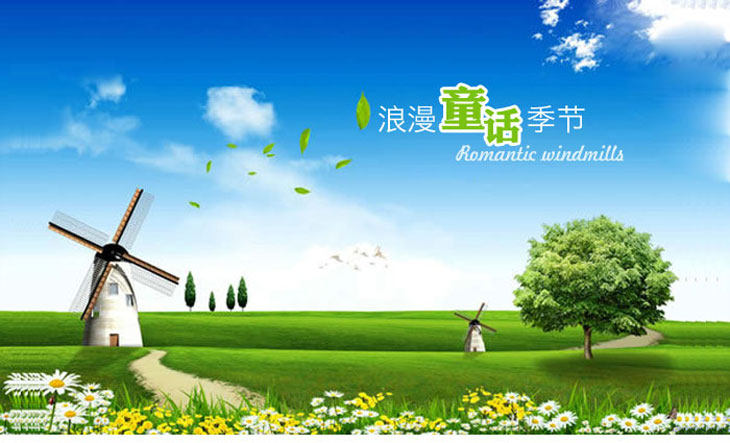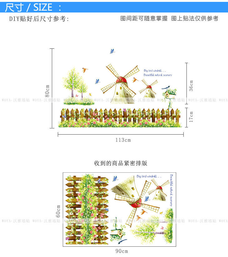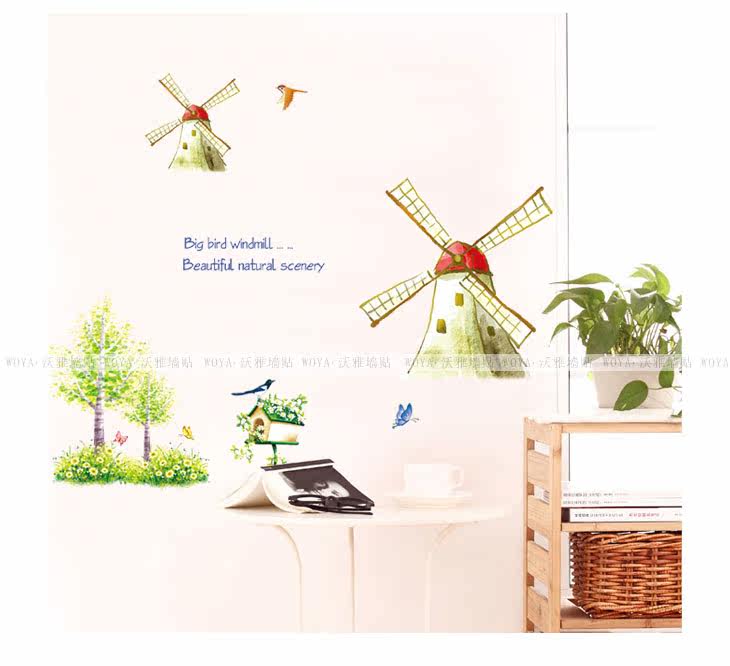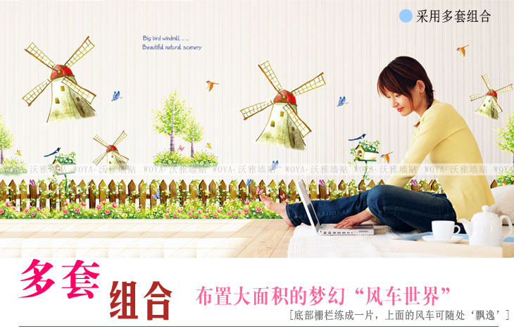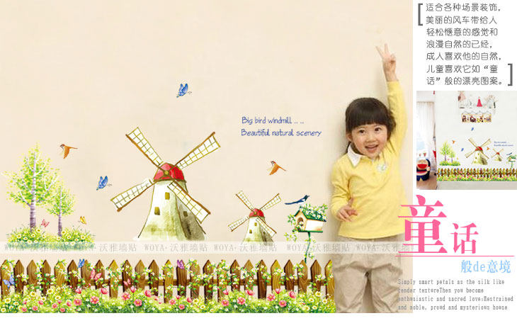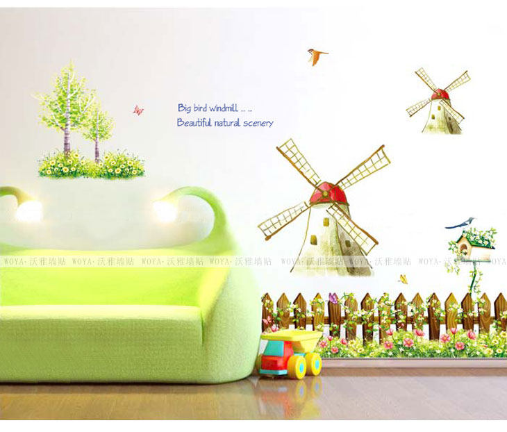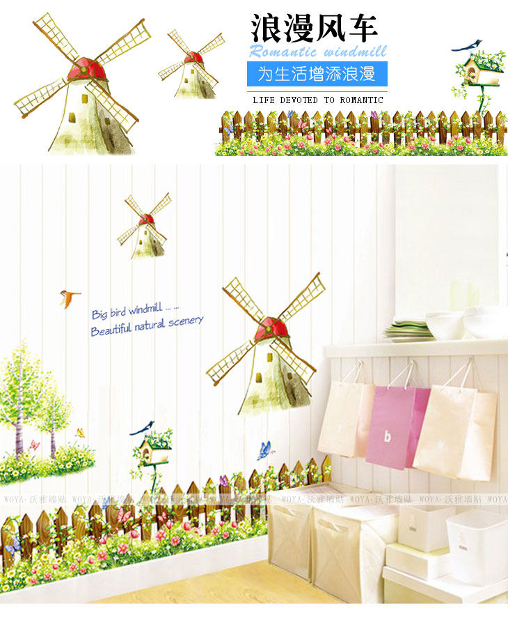 客厅沙发背景儿童房卧室床头装饰腰线可移除墙贴纸 童话风车