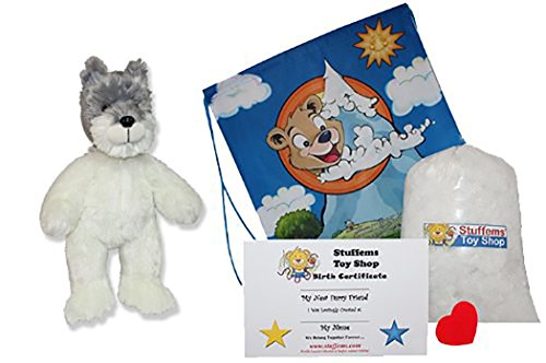 -. Feature : High Quality 15 inch Plush Terrier Dog / Kit Includes Plush Animal Skin, Bag of Fluff Stuffing, Fabric Wishing Heart Insert, Birth Certificate, Super Cute Nylon String Bag Backpack / Easy Instructions, No Sewing Required, Self-Sealing Closure, Super Soft Feel / Fits most 14 - 18 inch stuffed animal clothing and accessories. / Self-Sealing Closure big enough for sound module insert or record your own sound module.