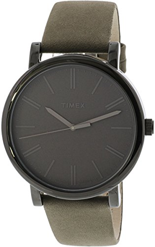 -. Title : Timex Easy Reader Grey Leather Strap Mens Watch T2N795