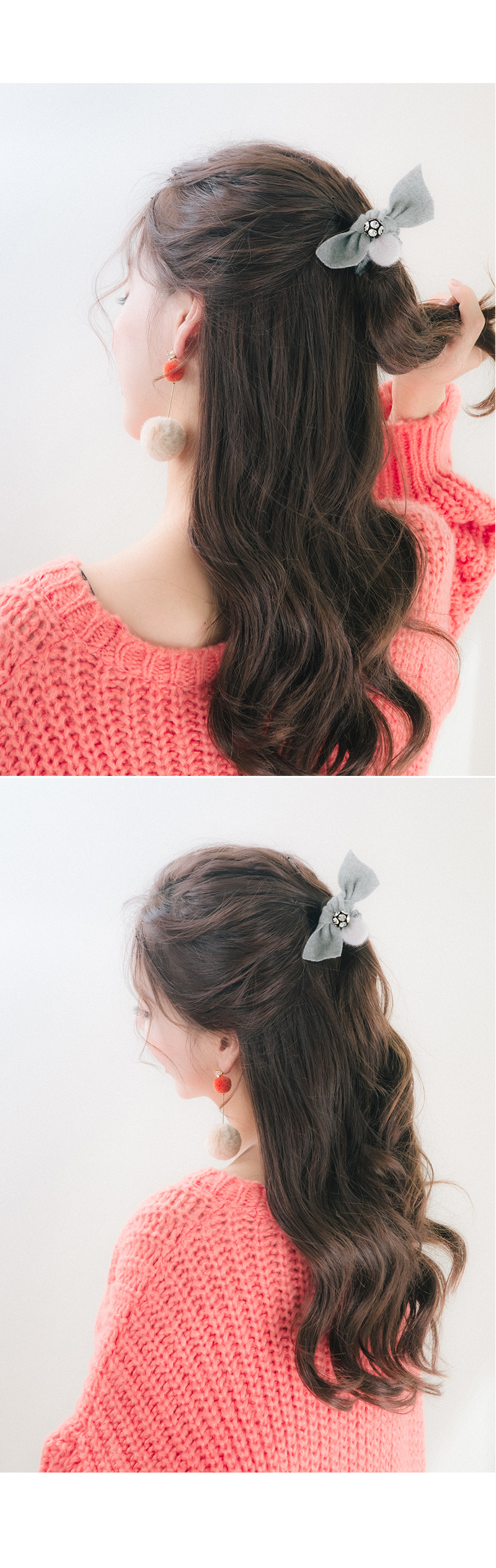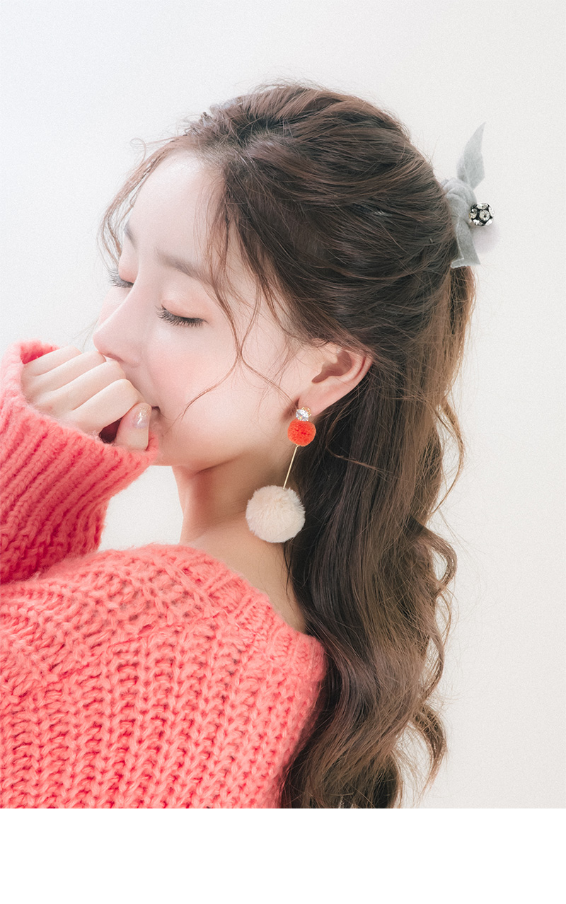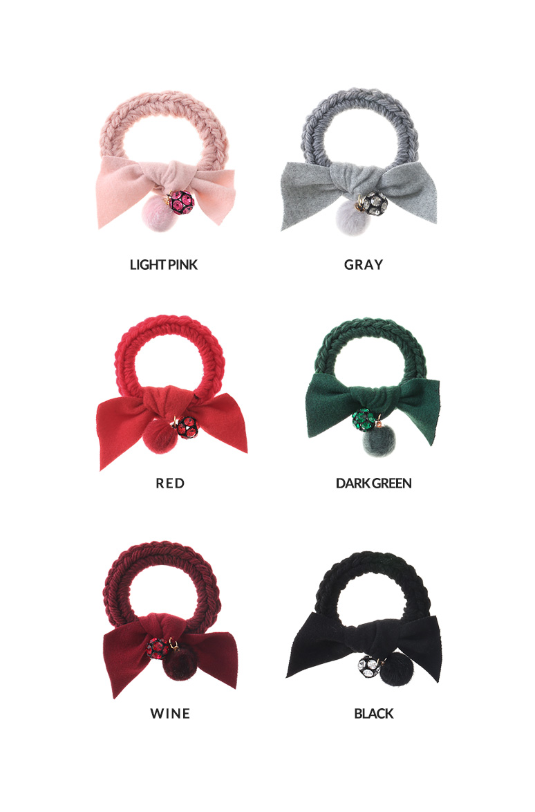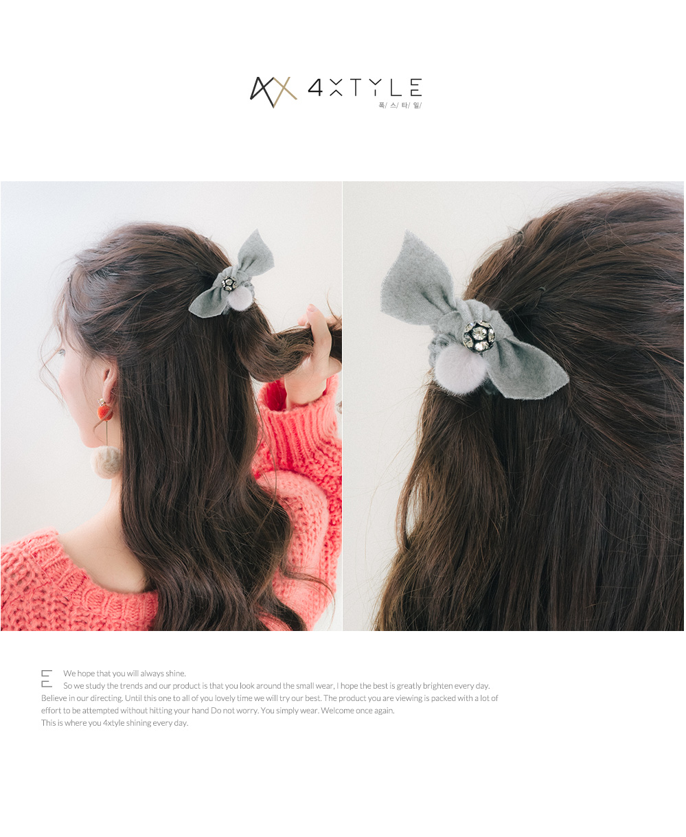 포근한 모직 소재의 원단과 따스한 볼장식이 큐트하고 스윗한 포니테일 입니다.