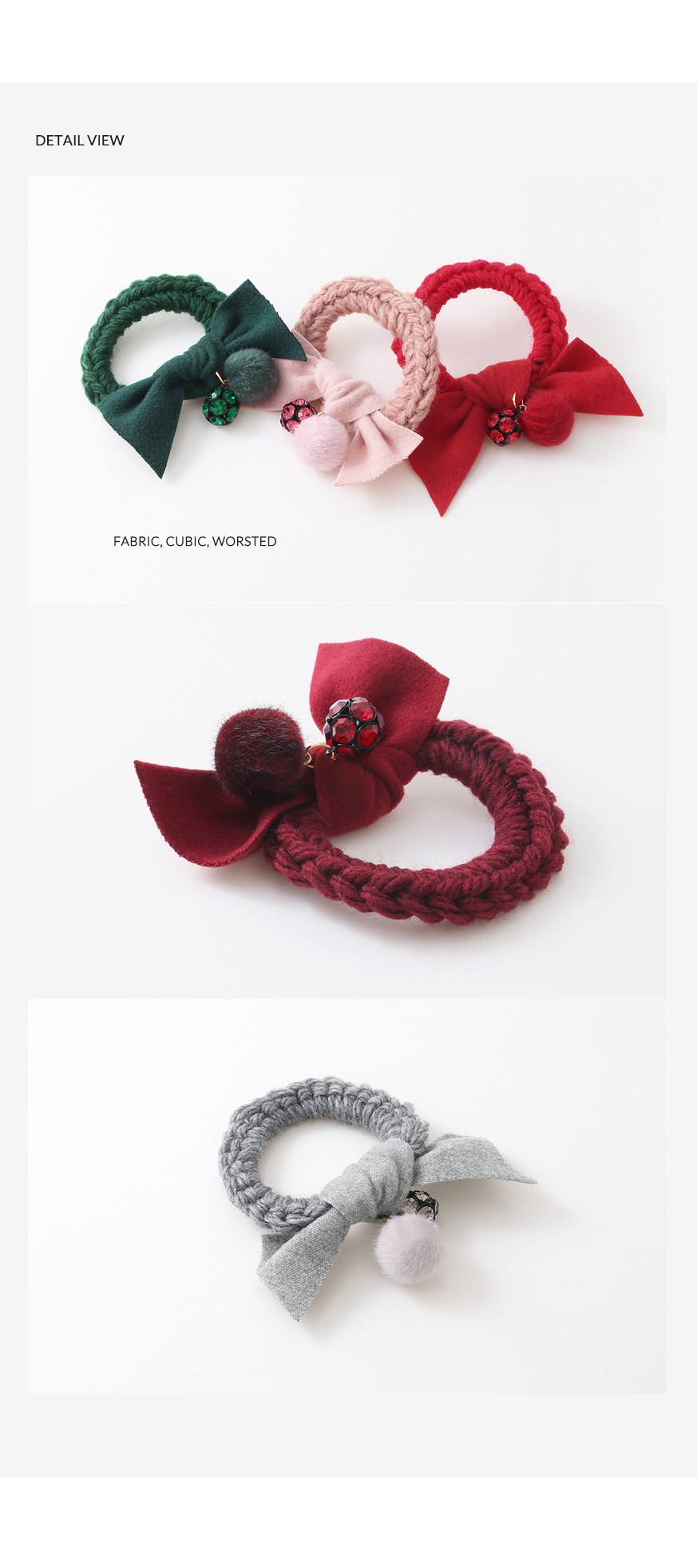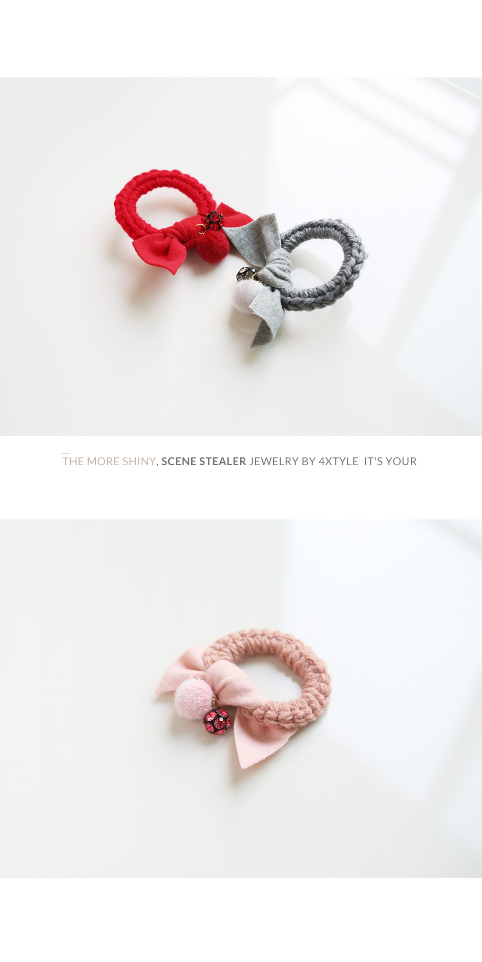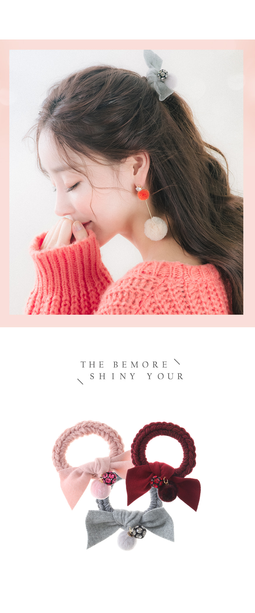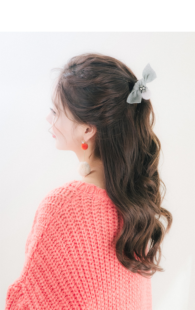 포근한 모직 소재의 원단과 따스한 볼장식이 큐트하고 스윗한 포니테일 입니다.