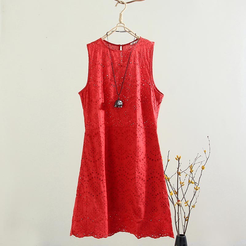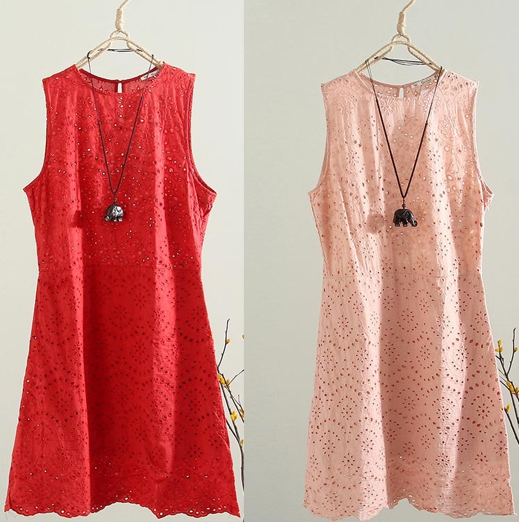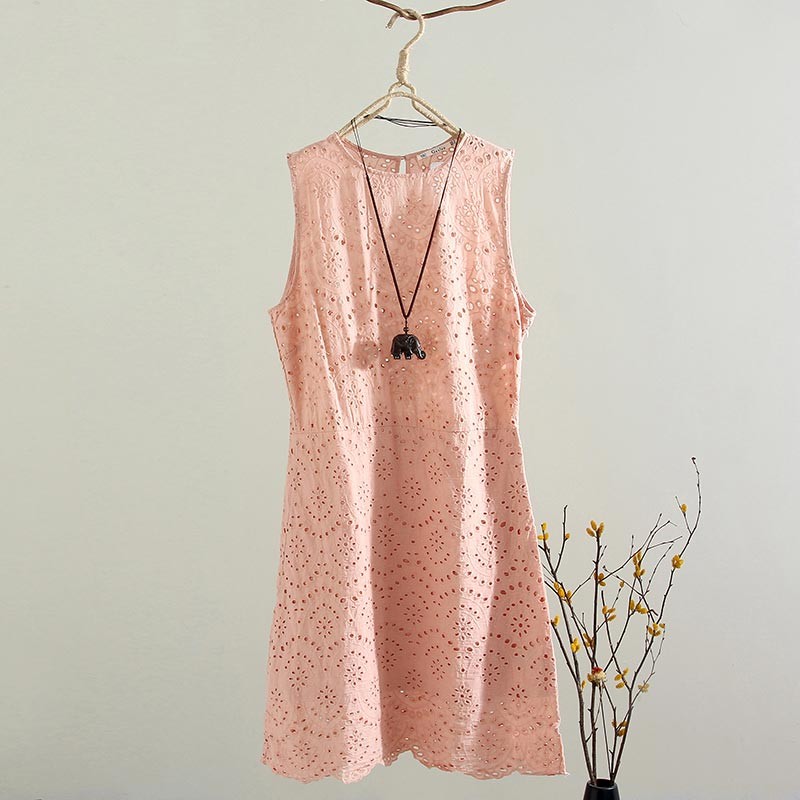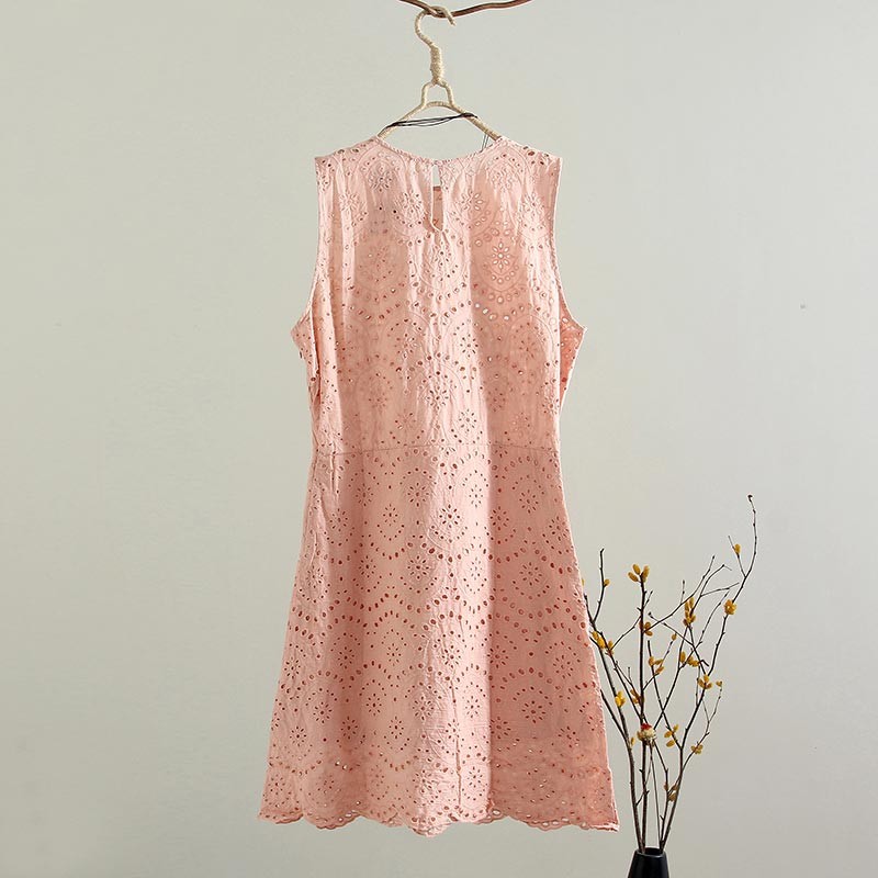 ラウンドネックでノースリーブ、総刺繍生地のミニ丈ワンピです!