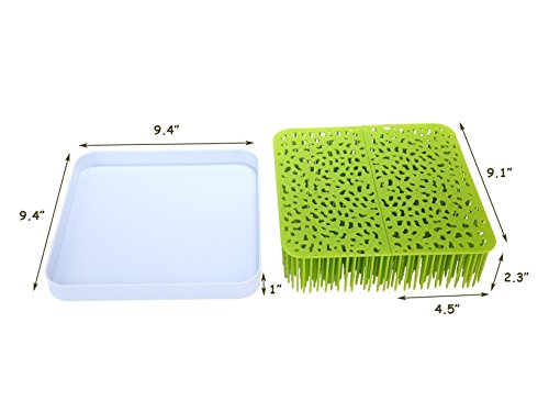 -. Binding : Baby Product -. Brand : JustNile -. Color : Green -. EAN : 0712392493802 -. Feature : UNLIKE OTHER ORDINARY ONES ON THE MARKET - The alike drying like features the spiky for placing bottle/utensil/plates to prevent them from cross-contamination. Easy to place on and take off, ideal for countertop drying items or you may put it in the bathroom to dry toiletries. -. IsAdultProduct : 0 -. Label : JusNile -. Manufacturer : JusNile -. MPN : DRYRCK001 -. PartNumber : DRYRCK001 -. ProductGroup : Baby Product -. ProductTypeName : BABY_PRODUCT -. Publisher : JusNile -. Studio : JusNile -. Title : Green Inspired Meadow Design Bottle Drying Rack with Drain Tray for Baby Bottles, Clean Brush, Dining Flatwares | BPA-Free, Non-Toxic Plastic Made | Antibacterial | Easy to Clean | Kitchen Décor -. UPC : 712392493802