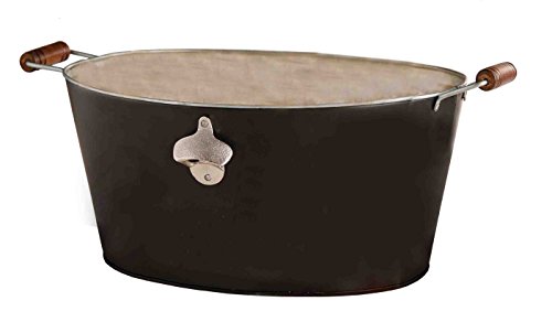 Keep any beverage cold all night at any party with our galvanized beverage tub featuring a chalkboard exterior, a built-in bottle opener and wood dowel handles.
