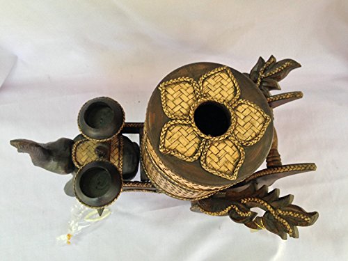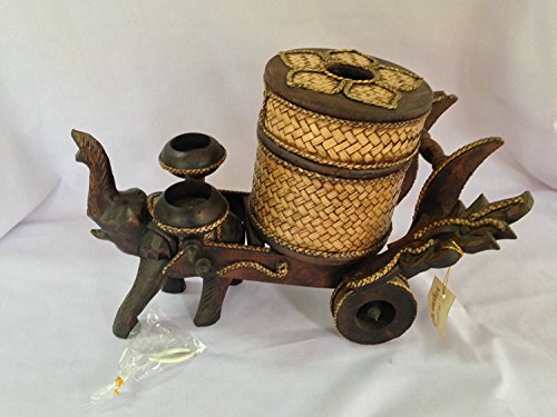Title : Antique Tissue Box Cover Elephant Cart Wooden Craved Figurine 2Tealight holders and Rattan Weaved for Gifts and Home Decor Thank You Cards # GaanzaLive36