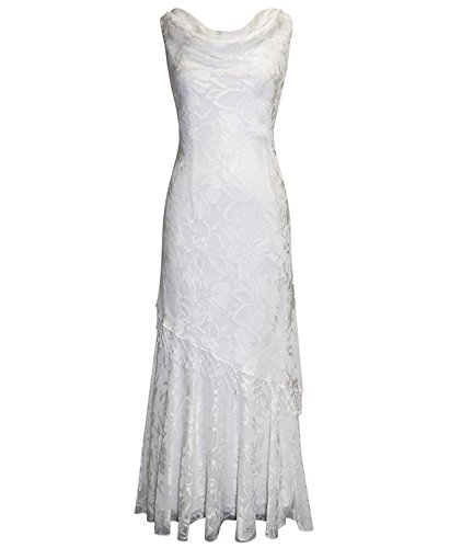 Two piece occasion set by Alex Evenings 175502 features a sleeveless column gown with draped neckline overlay, muted leaf print, and decorative edging on the tiered skirt. The matching, open sheer shawl has sparkling edging and an asymmetrical hem. Material: 58% Polyester, 42% Nylon Origin: Made in China Cleaning: Spot Clean.
