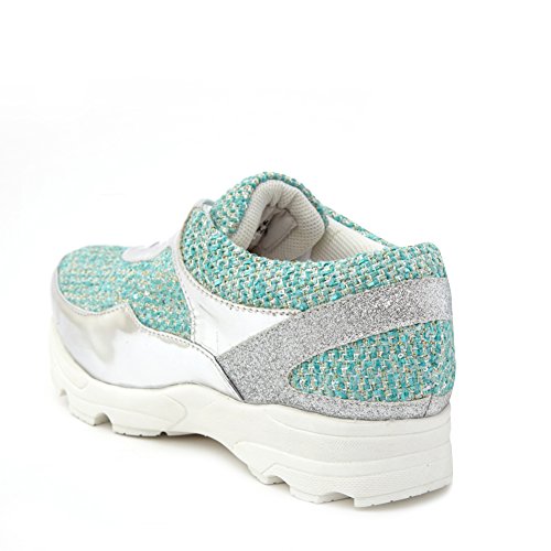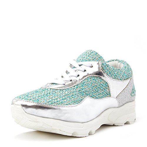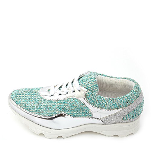 Binding : Apparel Product Description Tweed walking classic sport colored silver sneakers trainers. Classic tweed lends a modern feel to sporty Jeffrey Campbell sneakers. Gliitter trim offers playful contrast. Lace-up closure. Rubber sole. ABOUT THE BRAND: Established in 2000 in its eponymous designer's garage, LA-based label Jeffery Campbell uses exotic embellishment and eye-popping color to create its experimental collections. 0