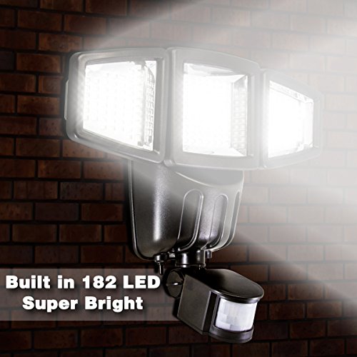 It powered by the sun, light any dark area and add extra security with the ANKO 182 LED Triple Head Solar Motion Light. The newly designed light offers adjustable side lamp heads for maximum lighting coverage. This light automatically turns on when motion is detected and comes equipped with 182 super-bright white LEDs, ensuring reliable lighting power for whenever you need it.