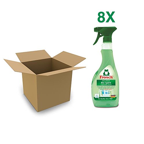 -. Feature : GREEN CLEANING, WITHOUT COMPROMISE. This is a case of 8, 500ml bottles of Frosch Bio Spirit Glass Cleaner. / Frosch Natural Bio Spirit Glass & Multi Surface Cleaner effectively removes grease, dirt, and residue from glass surfaces while leaving a streak-free shine. / This spray is particularly suitable for glass, windows, mirrors, high gloss furniture, car windows and windshields, but remains powerfully effective on most plain wipeable surfaces, including kitchen countertops, bathroom surfaces, high chairs, wheels, laminate, chrome, granite, plastic, quartz, sealed stone, unsealed stone, stainless steel, toilets, toys and vinyl. / 100% vegan, never tested on animals / Product of Germany, EU Ecolabel Certified