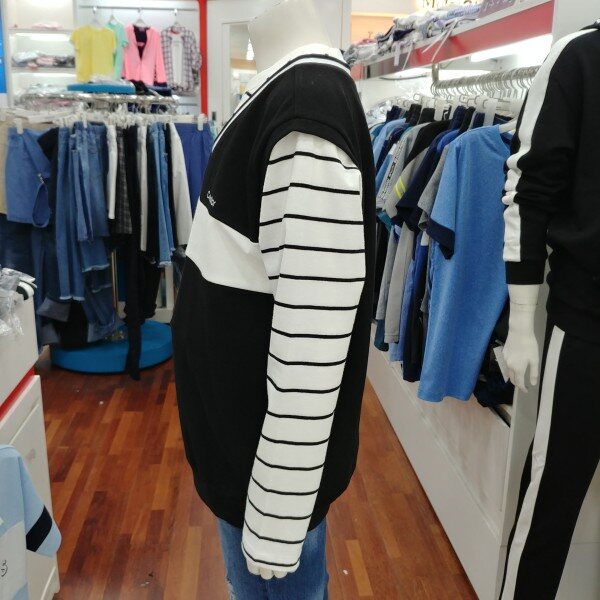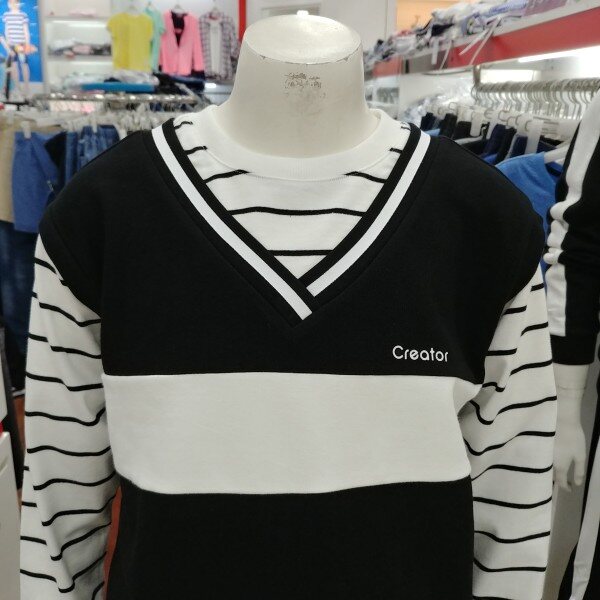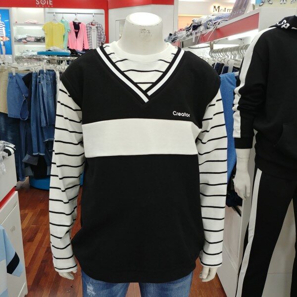 청바지에도 잘 어울리고블랙이나 화이트의 테니스 스커트에도 잘 어울리는 남녀공용 맨투맨 티셔츠입니다.특이하게도 조끼 형태의 레이어드 디자인이라서 더더욱 멋지게 활용 할 수 있는 아이템입니다.