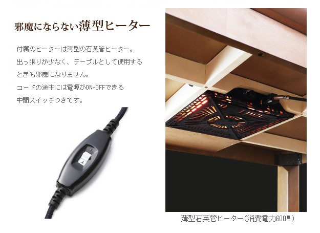 薄型石英管ヒーター(600W・中間スイッチ式)、コード長3m