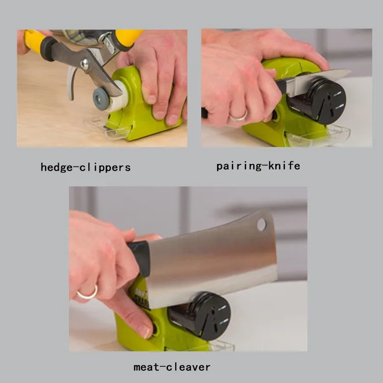 This incredible motorized knife sharpener includes a safety slot for different functions and has a removable attachment for all your sharpening needs - big or small.