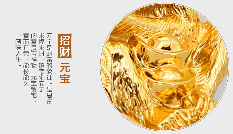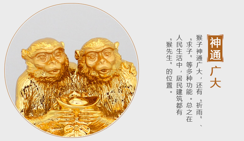 “猴”与“侯”两字谐音,封侯拜相寓比立即升腾之意。布此风水用具可摧官贵,也可令自己如愿以偿的掌握权职,坐上发号司令的位置。